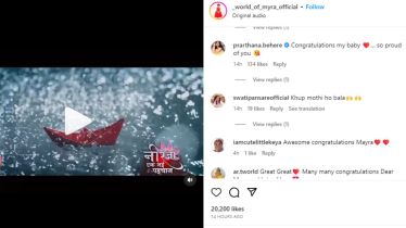 मायराच्या मालिकेचा प्रोमो पाहून चाहते तिचं अभिनंदन करत आहेत. तसेच तिच्या नव्या वाटचालीसाठी शुभेच्छा देत आहे. शिवाय प्रार्थना बेहरेने हा व्हिडीओ पाहून केलेली कमेंट विशेष लक्ष वेधून घेणारी आहे. मायराच्या नव्या मालिकेचा प्रोमो पाहून प्रार्थना म्हणाली, “माझं बाळ तुझं खूप खूप अभिनंदन. मला तुझा खूप अभिमान आहे”. मायरासह अभिनेत्री स्नेहा वाघ या मालिकेमध्ये मुख्य भूमिकेत काम करताना दिसेल.