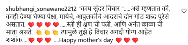 या व्हिडीओमध्ये अभिनेता म्हणतो की, एक अतिशय सुंदर स्त्री, माझी मैत्रीण, त्यानंतर माझी प्रेयसी आणि त्यानंतर माझी बायको. आता ऋग्वेद, राधा आणि माझीसुद्धा आई. खरंच, प्रियांका तुझ्यामुळे माझ्यातल्या पुरुषाला, माझ्यातल्या बापाला आईपण जपता येतं. हॅपी मदर्स डे प्रियांका”, असे म्हणत अभिनेत्याने पत्नीला मातृदिनाच्या शुभेच्छा दिल्या आहेत.