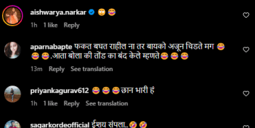 अविनाश नारकर यांच्या या मजेशीर रीलवर ऐश्वर्या नारकर यांनी प्रतिक्रियेत हसण्याचे इमोजी शेअर केले आहेत. तसेच एका नेटकरीनं लिहीलं आहे की, “फक्त बघत राहील ना तर बायको अजून चिडते मग.. आता बोला की तोंड का बंद केले म्हणते.” तसेच दुसऱ्या नेटकरीनं लिहीलं की, “छान भारी हं.” तर तिसऱ्या नेटकऱ्यानं लिहीलं की, “ईशय संपला…”