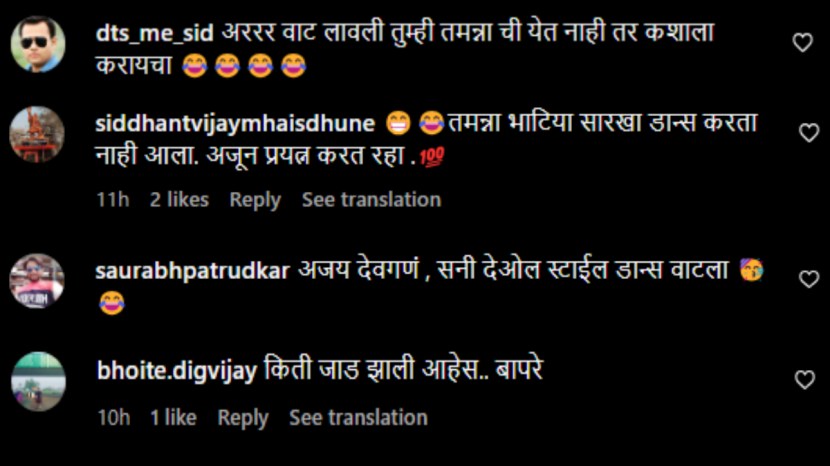 पण अभिनेत्रीचा हा डान्स पाहून नेटकऱ्यांनी तिला चांगलंच ट्रोल केलं आहे. एक नेटकरी म्हणाला, “तमन्ना भाटियासारखा डान्स करता नाही आला. अजून प्रयत्न करीत राहा.” तर दुसरा नेटकरी म्हणाला, “अजय देवगण व सनी देओल स्टाईल डान्स वाटला.” तसेच तिसऱ्या नेटकऱ्यानं लिहिल, “अरेरे वाट लावली तुम्ही तमन्नाची; डान्स येत नाही, तर कशाला करायचा?” तर चौथ्यानं तिच्या शरीरयष्टीवर बोलत लिहिलं, “किती जाड झाली आहेस, बापरे!”