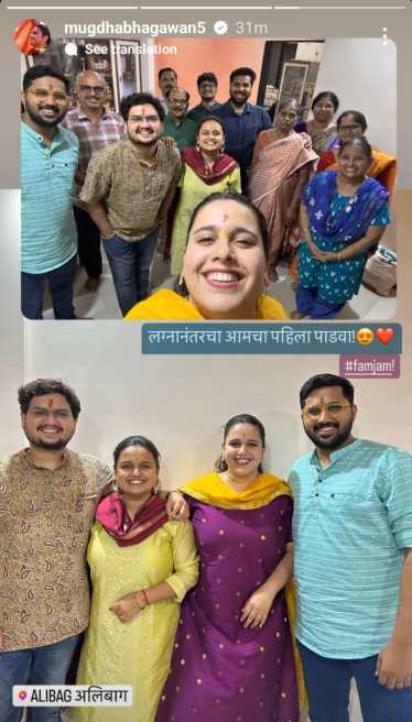 यंदा मुग्धा व प्रथमेशचा लग्नानंतरचा पहिला गुढीपाडवा होता. हा पहिला गुढीपाडवा दोघांनी आपल्या कुटुंबाबरोबर साजरा केला. यासंबंधित फोटो मुग्धाने तिच्या इन्स्टाग्राम स्टोरीवर शेअर केले आहेत.