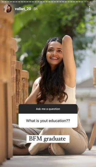 तसेच वल्लरीला “तुझं शिक्षण काय?” असा देखील एका चाहत्याने प्रश्न विचारला. यावर वल्लरी म्हणाली, “BFM Graduate (बॅचलर ऑफ फायनान्शियल मार्केट्स, Bachelor of Financial Markets)”