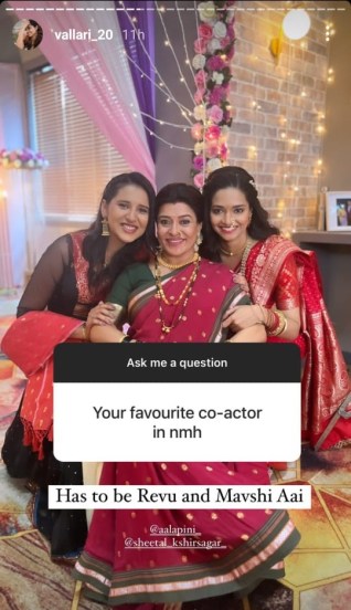 त्यानंतर अभिनेत्रीला आवडत्या सहकलाकारांविषयी प्रश्न विचारला. तेव्हा वल्लरीने सांगितलं, “रेवू म्हणजे अभिनेत्री आलपिनी निसळ आणि मावशी आई म्हणजेच अभिनेत्री शितल क्षीरसागर” हे दोन सहकलाकार वल्लरीला आवडतात.