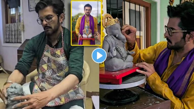 अभिनेता राकेश बापटेने आपल्या इन्स्टाग्रामवर गणपतीची मूर्ती तयार करतानाचा व्हिडीओ शेअर केला आहे. या व्हिडीओमध्ये राकेश स्वतःच्या हाताने मूर्ती बनवताना दिसत आहे. यात राकेशने मस्त सुंदर अशी लाडक्या बाप्पाची मूर्ती साकारल्याचं पाहायला मिळत आहे. राकेशने बनवलेल्या गणरायाची मूर्ती आता जहागीरदारांच्या घरी विराजमान होणार आहे.