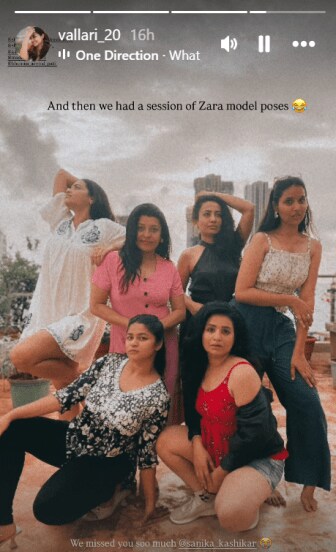 तसेच सानिका काशिकरला टॅग करत आम्हाला तुझी खूप आठवण आली, असेही वल्लरीने लिहिले आहे. सानिका काशिकरने तिच्या इन्स्टाग्रामवर काम असल्याने ती सर्वांबरोबर हजर राहू शकली नाही असे लिहिले आहे.