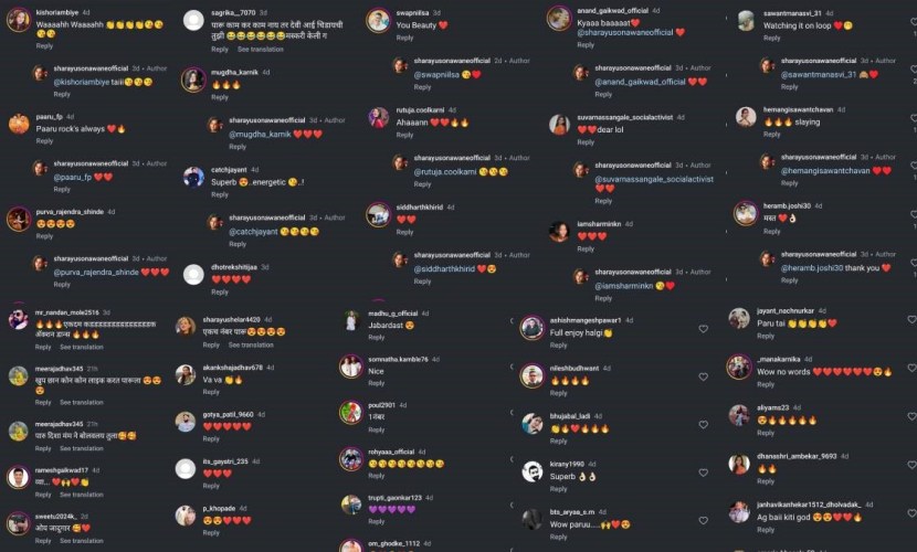 शरयूच्या ( Sharayu Sonawane ) या डान्स व्हिडीओवर नेटकऱ्यांच्या प्रतिक्रियांचा पाऊस पडला आहे. “व्वा”, “पारू रॉक्स”, “एनर्जेटिक”, “क्या बात”, “मस्त”, “एकदम कडक डान्स”, “एक नंबर पारू”, “जबरदस्त”, “भारी”, “अगं बाई किती गोड” अशा अनेक प्रतिक्रिया नेटकऱ्यांनी दिल्या आहेत. एका नेटकऱ्याने लिहिलं आहे, “व्वा…शब्दच नाहीयेत”. तर दुसऱ्या नेटकऱ्याने लिहिलं आहे की, सोनावणेचा नाद खुळा. तसंच तिसऱ्या नेटकऱ्याने लिहिलं आहे, “मी व्हिडीओ सतत बघतं आहे.”
