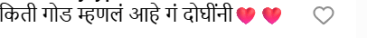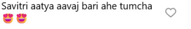 त्यांच्या या व्हिडीओवर अनेकांनी कौतुक करणाऱ्या कमेंटस केल्या आहेत. मालिकेत प्रीतम या भूमिकेत दिसणाऱ्या अभिनेता अनुज साळुंखेने वाह अशी कमेंट करत हार्ट इमोजी शेअर केली आहे. अभिनेत्यासह चाहत्यांनी अनेक कमेंट केल्या आहेत. “सुंदर”, “सावित्री आत्या तुमचा आवाज छान आहे”, “दोघींनी गाणं किती गोड म्हटलं आहे”, “मस्तच”, “वाह! दामिनी आणि सावित्री आत्या”, “खूप छान”, अशा अनेक कमेंट केल्या आहेत.