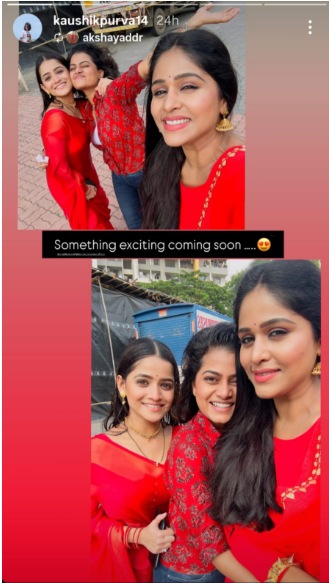 अभिनेत्री शरयू सोनावणेने पारू ही भूमिका साकारली आहे. शिवा या भूमिकेत पूर्वा कौशिक दिसत आहे. तर लक्ष्मी निवास मालिकेतील भावना ही भूमिका अभिनेत्री अक्षया देवधरने साकारली आहे. अक्षया देवधरने इन्स्टाग्राम स्टोरीवर पूर्वा आणि शरयूबरोबरचे फोटो शेअर केले आहेत. शरयू व पूर्वाने हे फोटो रिपोस्ट केले आहेत. हे फोटो शेअर करताना लवकरच काहीतरी प्रेक्षकांच्या भेटीला येणार आहे, असे लिहिले आहे. तर पुढे एक मजेशीर व्हिडीओदेखील शेअर केला आहे.