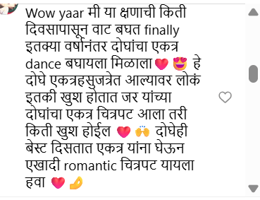 तर प्राजक्ता माळीने हा व्हिडीओ शेअर करत लिहिले, “या गाण्यावर आपण डान्स केल्यापासून मी सतत हे गाणे ऐकत आहे आदित्य”, तसेच तिने ‘प्रेमाची गोष्ट २’साठी शुभेच्छा दिल्या आहेत.