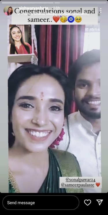 ‘रमा राघव’ या मालिकेतील अश्विनी हे पात्र साकारलेल्या अभिनेत्रीचा साखरपुडा मोठ्या थाटामाटात पार पडला आहे. अभिनेत्री सोनल पवारने समीर पालुष्टेबरोबर काल गुपचूप साखरपुडा उरकला आहे. साखरपुड्याचे फोटो आणि व्हिडीओ सोशल मीडियावर चांगलेच चर्चेत आले आहेत. त्यामुळे सध्या कलाकार मंडळींसह सोनलचे चाहते शुभेच्छा देताना पाहायला मिळत आहेत.