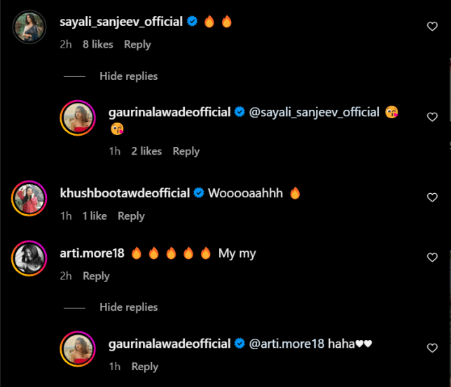 सायली संजीव, खुशबू तावडे, आरती मोरे अशा अनेक अभिनेत्रींनी गौरीच्या या फोटोजवर कमेंट्स केल्या आहेत.