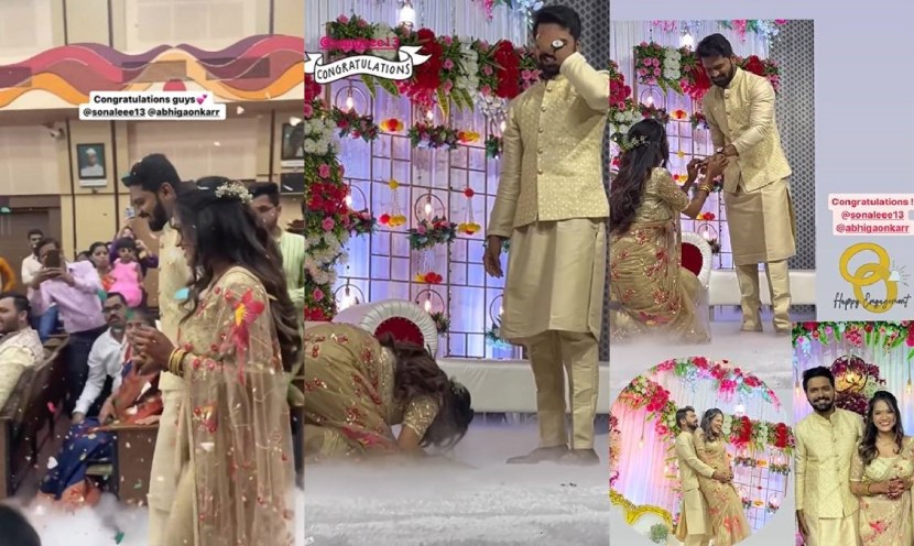 साखरपुड्यातील अभिषेक व सोनालीच्या एका कृतीने सगळ्यांचं लक्ष वेधून घेतलं आहे. साखरपुड्यात एकमेकांना अंगठी घालताना अभिषेक व सोनाली एकमेकांच्या पाय पडले. त्यांची ही कृती पाहून उपस्थितांनी जोरदार टाळ्या वाजवल्या.