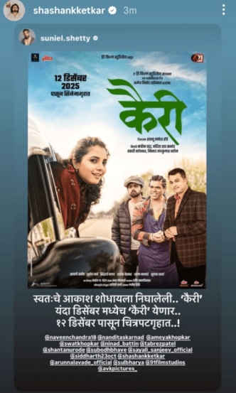 या पोस्टमध्ये शशांकबरोबर सुबोध भावे, सिद्धार्थ जाधव आणि अभिनेत्री सायली संजीवदेखील दिसत आहे. तसेच, अरुण नलावडे आणि सुलभा आर्यदेखील दिसणार आहेत. या चित्रपटाचे दिग्दर्शन शंतनू गणेश रोडे यांनी केले आहे. ए ९१ फिल्म प्रोडक्शन, अमेय खोपकर एंटरटेनमेंट प्रस्तुत या चित्रपटाची निर्मिती नवीन चंद्रा, नंदिता राव कर्नाद, स्वाती खोपकर, निनाद नंदकुमार बत्तीन यांनी केली आहे. ही पोस्ट सुनील शेट्टीनेदेखील शेअर केली आहे.