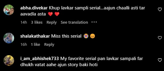 ‘आशीर्वाद तुझा एकवीरा आई’ मालिकेचा काल शेवटचा भाग प्रसारित झाला. त्यानिमित्तानं ‘सोनी मराठी’च्या सोशल मीडिया पेजवरून मालिकेवर प्रेम करणाऱ्या प्रेक्षकांचे आभार व्यक्त करण्यात आले. पण याच पोस्टच्या खाली नेटकऱ्यांनी नाराजी व्यक्त केली आहे. एका नेटकरीनं लिहिलं आहे की, “मालिका खूप लवकर संपली. अजून चालली असती तर आवडलं असतं.” तर दुसऱ्या नेटकऱ्यानं लिहिलं की, “माझी आवडती मालिका होती. पण लवकर संपली. फार दुःख होतं आहे. अजून कथा बाकी होती.” तसेच तिसऱ्या नेटकऱ्यानं लिहिलं आहे की, “खूपच लवकर मालिका संपली. पुढे मालिका चालायला पाहिजे होती.”