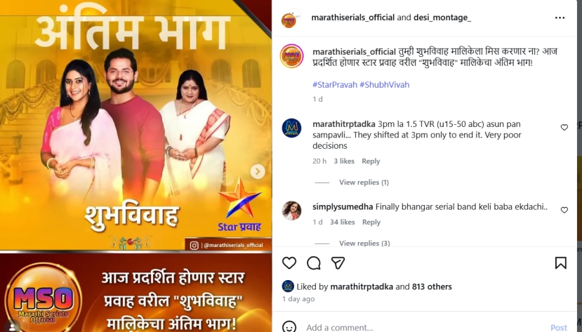 दरम्यान, ‘शुभविवाह’ मालिकेने नुकतेच हजार भागही पूर्ण केले होते. ही मालिका सुरुवातीला दुपारी २ वाजता, त्यानंतर सप्टेंबर २०२५ पासून दुपारी अडीच वाजता आणि आता १६ फेब्रुवारी ते ५ मार्च असे काही दिवस ‘शुभविवाह’ मालिका दुपारी तीन वाजता प्रसारित केली गेली. आता ‘स्टार प्रवाह’वर आगामी काळात कोणत्या नव्या मालिका प्रेक्षकांच्या भेटीला येणार हे पाहणं महत्त्वाचं ठरणार आहे.