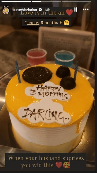 पियूष व सुरुची सोशल मीडियावर मोठ्या प्रमाणात सक्रिय असतात. निरनिराळे फोटो व व्हिडीओ शेअर करीत ते चाहत्यांना अपडेट देत असतात. लग्नानंतर सुरुची व पियूष एकमेकांबरोबर वेळ घालवताना दिसत आहेत. आपल्या व्यग्र वेळापत्रकामधून वेळ काढून दोघेही फिरायलादेखील गेले होते. दरम्यान, पियूष व सुरुची यांच्या लग्नाला नुकतेच तीन महिने पूर्ण झाले आहेत. या खास दिवसानिमित्त दोघे एका रोमँटिक डेटवर गेले आहेत. सुरुचीने आपल्या इन्स्टाग्रामवर या डेटचा फोटो शेअर केला आहे. दोघेही एका रेस्टॉरंटमध्ये डिनरला गेलेले बघायला मिळत आहेत. यावेळी पियूषने सुरुचीसाठी ‘Happy 3 Month Darling’, असे लिहिलेला एक खास केकही ऑर्डर केला होता. या केकचा फोटो शेअर करीत, सुरुचीने “जेव्हा तुमचा नवरा तुम्हाला असं खास सरप्राइज देतो”, अशी कॅप्शन दिली आहे.
