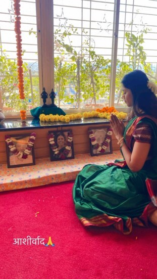 अभिनेत्री स्वरदाने देवक विधीचे फोटो इन्स्टाग्राम स्टोरीवर शेअर केले आहेत. ज्यामध्ये स्वरदा हिरव्या रंगाच्या खणाच्या साडीत पाहायला मिळत आहे. गजरा, नाकात नथ आणि डोक्यावर मुंडावळ्या अशा पारंपरिक लूकमध्ये अभिनेत्री खूप सुंदर दिसत आहे.
