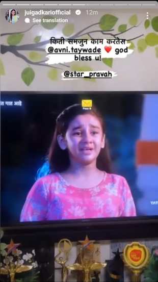 जुईनं ज्या बालकलाकाराचं कौतुक केलं ती दुसरी तिसरी कोणी नसून ‘तुझेच मी गीत गात आहे’ मालिकेतील स्वरा म्हणजे अवनी तायवाडे आहे. ‘तुझेच मी गीता गात आहे’मध्ये अवनीने उत्कृष्टरित्या स्वरा कामतची भूमिका साकारली आहे. त्यामुळेच मालिकेतील तिच्या सीनचा फोटो शेअर करत जुईनं तिची पाठ थोपटली आहे. जुई म्हणाली, “किती समजून काम करतेस अवनी. देवाचे आशीर्वाद सदैव तुझ्या पाठिशी असो.” जुईचं हे कौतुक पाहून अवनीने सोशल मीडियाद्वारेच तिचे आभार मानले.