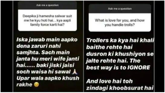 शोएब इन्स्टाग्रामद्वारे चाहत्यांच्या प्रश्नाची उत्तरे दिली आहेत. त्यावेळी एका चाहत्याने दीपिका नेहमी सलवार सूटमध्ये दिसते. तुझ्या कुटुंबीयांनी तिला असे कपडे परिधान करण्यासाठी फोर्स केला आहे का? असा प्रश्न विचारला. त्याचा हा प्रश्न पाहून शोएबला राग आला आणि त्याला चाहत्याला त्याने चांगलेच सुनावले.