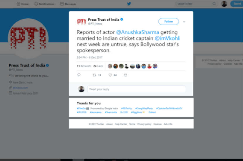 अनुष्काच्या प्रवक्त्याने विराट आणि अनुष्का इटलीमध्ये लग्न करत नसल्याचे म्हटले. अनेक वृत्त वाहिन्यांवर या दोघांच्या लग्नाची तारीख समोर आल्यामुळेच त्यांना हे विधान देणे गरजेचे पडले.