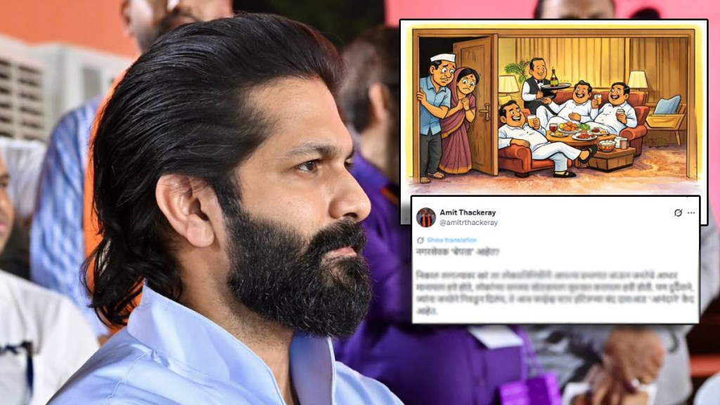 “नगरसेवक ‘बेपत्ता’ आहेत?” असा प्रश्न विचारत अमित ठाकरे म्हणाले की, “निकाल लागल्यावर खरं तर लोकप्रतिनिधींनी आपल्या प्रभागात जाऊन जनतेचे आभार मानायला हवे होते, लोकांच्या समस्या सोडवायला सुरुवात करायला हवी होती. पण दुर्दैवाने, ज्यांना जनतेने निवडून दिलंय, ते आज फाईव्ह स्टार हॉटेलच्या बंद दाराआड ‘आनंदाने’ कैद आहेत.”