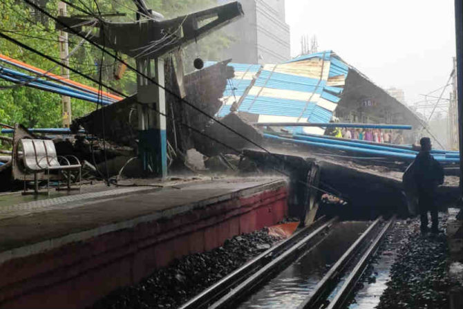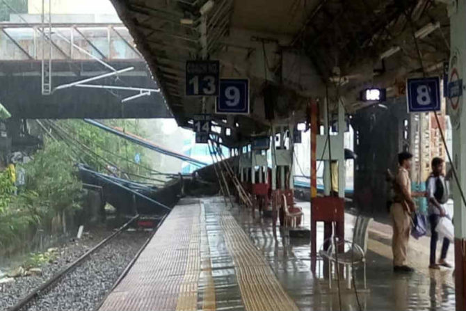 मंगळवारी सकाळी साडे सातच्या सुमारास अंधेरी पूर्व आणि पश्चिमेला जोडणाऱ्या पुलाचा काही भाग कोसळला. सुदैवाने त्यावेळी खालून लोकल ट्रेन जात नसल्याने मोठा अनर्थ टळला. घटनेची माहिती मिळताच अग्निशमन दल, रेल्वेचे पथक घटनास्थळी पोहोचले असून ढिगारा बाजूला करण्याचे काम सुरु आहे. या दुर्घटनेत ओव्हरहेड वायरचेही नुकसान झाले असून वाहतूक कधी पूर्ववत होईल, हे अद्याप समजू शकलेले नाही. पावसामुळे या कामात अडथळे येत आहेत.