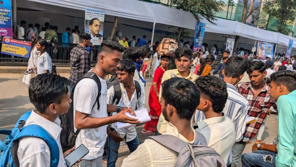 ‘दरवर्षी महापरिनिर्वाण दिनी देशाच्या कानाकोपऱ्यातून लाखो अनुयायी डॉ. बाबासाहेब आंबेडकर यांना अभिवादन करण्यासाठी येतात. यामध्ये विद्यार्थ्यांचीही संख्याही मोठा मोठी असते. मात्र काही विद्यार्थी विविध शैक्षणिक योजना आणि अभ्यासक्रमांसंदर्भात अनभिज्ञ असतात. त्यामुळे शिक्षणविषयक माहिती तळागाळातील विद्यार्थ्यांपर्यंत पोहोचविण्यासाठी हा उपक्रम गेल्या चार वर्षांपासून चैत्यभूमीवर राबविण्यात येत आहे. या उपक्रमामधून माहिती मिळवून गेल्यावर्षी सुमारे २५० विद्यार्थी मुंबईत शिक्षणासाठी दाखल झाले असून त्यांनी विविध महाविद्यालयांमध्ये प्रवेश घेतला’, असे शासकीय वसतिगृहातील विद्यार्थ्यांनी सांगितले.