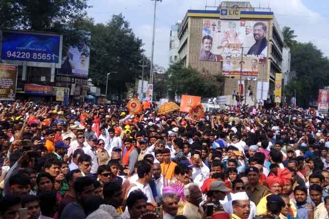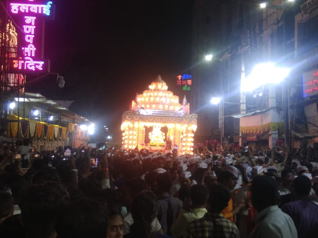 पुण्यातील बाप्पाच्या मिरवणुकांची धामधूम रात्रभर सुरू होती. शहरातील प्रसिद्ध अशा दगडूशेठ गणपती बाप्पाच्या विसर्जनाची मिरवणूक रात्री अलका चौकातून पुढे आली. पहाटे ५च्या सुमारास या बाप्पाचे विसर्जन करण्यात आले.