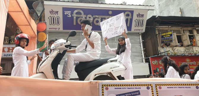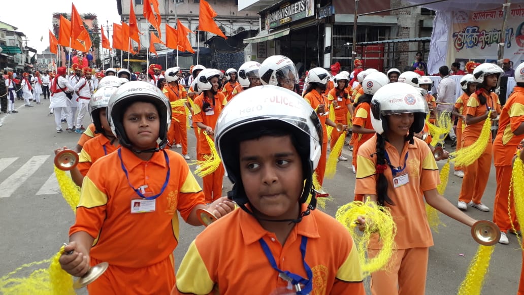 दुचाकी चालकांनी हेल्मेट वापरावं यासाठी नाशिक इथल्या लेझिम अँड ढोल पथकातर्फे जनजागृती करण्यात आली. या पथकाद्वारे राबवण्यात आलेली मोहिम मिरवणुकीत अनेकांचं लक्ष वेधून घेत होती.