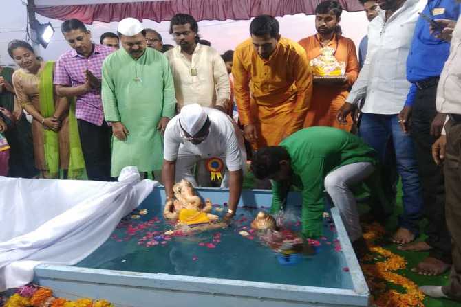 नागपूर : दहा दिवस बाप्पांची सेवा केल्यानंतर आता लाडक्या बाप्पाला निरोप देण्याची वेळ आली आहे. त्यामुळे नागपूर येथेही घरगुती गणपतीच्या विसर्जनास सुरूवात झाली आहे. (छाया सौजन्य :मोनिका चतुर्वेदी)