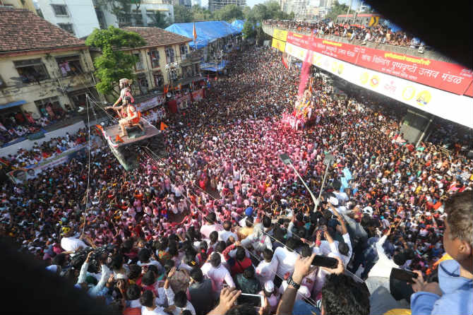 लालबागच्या राजाच्या दर्शनासाठी भाविकांची अलोट गर्दी जमली आहे.