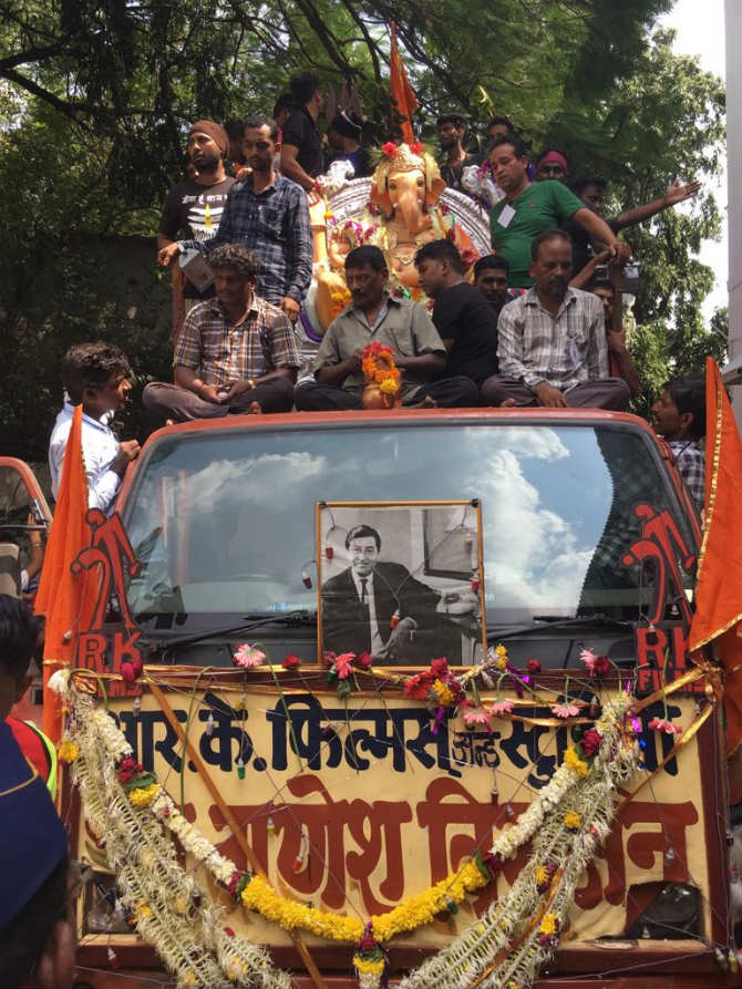 आर. के. स्टुडिओच्या गणपतीची विसर्जन मिरवणूक, रणबीर कपूर आणि राजीव कपूर यांची मिरवणुकीला हजेरी