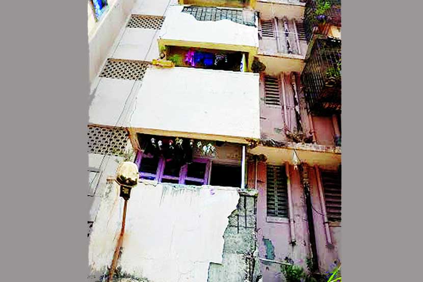 जोगेश्वरी पूर्वेकडे पूनमनगर येथे म्हाडाची नवी पोलीस वसाहत आहे. या वसाहतीत पोलिसांची अनेक कुटुंबे वास्तव्याला आहेत. या वसाहतीतील एका इमारतीच्या तळमजल्यावरील घराच्या बाल्कनीचा भाग गुरुवारी कोसळला. या दुर्घटनेत सुदैवाने कोणीही जखमी झाले नाही. इमारतीच्या अन्य घरांमधील भिंतींना, बाल्कनीला तसेच छताला तडे गेले आहेत. इमारतीची लिफ्टही बंद आहे. ही इमारत ३० वर्षे जुनी असून तिची एकदाच दुरुस्ती करण्यात आली आहे. या इमारतीची दुरुस्ती करण्यात यावी तसेच या वसाहतींतील सदनिका येथे राहणाऱ्या पोलीस कर्मचारी व अधिकारी यांना कायमस्वरूपी देण्यात याव्यात अशी मागणी स्थानिक लोकप्रतिनिधींनी मुख्यमंत्री तसेच म्हाडाकडे केली होती. मात्र याबाबतचा निर्णय गृहविभागाकडून होणे अपेक्षित असल्याचे उत्तर म्हाडाने दिले होते. वारंवार दुरुस्तीचे अर्ज म्हाडाला करूनदेखील दुरुस्ती करण्यात आलेली नसतानाच या इमारतीचा काही भाग कोसळला. त्यामुळे येथील रहिवाशी संतप्त झाले असून त्यांनी स्थानिक लोकप्रतिनिधींवर आगपाखड केली. शुक्रवारी हा भाग कोसळल्याची पाहणी करण्यास पोहचलेले राज्याचे गृहनिर्माण, उच्च व तंत्रशिक्षण राज्यमंत्री रवींद्र वायकर यांच्याकडे स्थानिक रहिवाशांनी नाराजी व्यक्त करत येथील इमारतींच्या दुरवस्थेचा पाढाच वाचला. त्यामुळे स्थानिक आमदार असलेले हे मंत्री महोदय खडबडून जागे झाले व यातून मार्ग काढण्यासाठी पुढील आठवडय़ात अधिकाऱ्यांसमवेत बठक घेण्यात येईल, असे आश्वासन त्यांनी दिले.