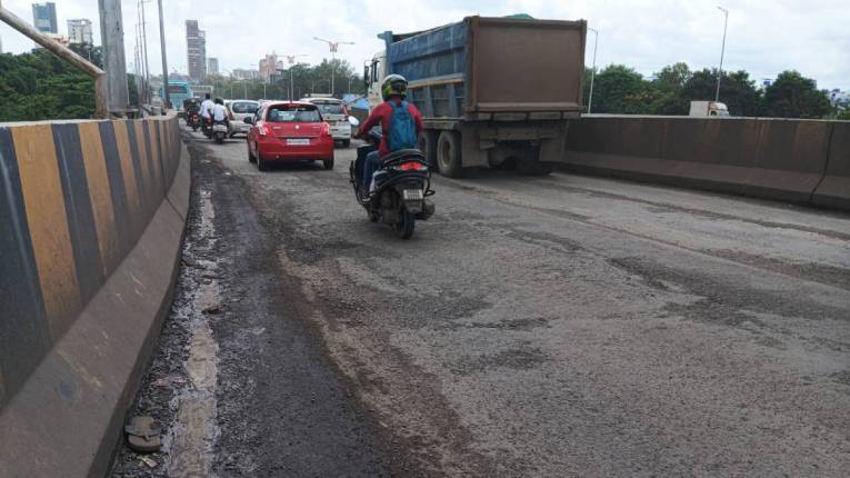 पनवेलवरून मुंबईच्या दिशेने येणाऱ्या मार्गावर नेरुळ उड्डाणपूल, तुर्भे उड्डाणपूल, वाशीतील दोन्ही उड्डाणपूल, मानखुर्द टी जंक्शन, मानखुर्द रेल्वे स्थानक, आणि मानखुर्द रेल्वे उड्डाणपूल येथे मोठ्या प्रमाणात खड्डे पडले आहेत. मानखुर्द रेल्वे उड्डाणपुलालगत काही महिन्यांपूर्वी नवा पूल बांधण्यात आला. मात्र, पावसाळ्यात या उड्डाणपुलाच्या पृष्ठभागावरील सर्व डांबर निघून गेले. काही महिन्यांपूर्वी त्याची पुन्हा डागडुजी करण्यात आली. मात्र, तेथे पुन्हा खड्डे पडले आहेत. अशीच स्थिती तुर्भे उड्डाणपुलाची आहे. हा पूल काही महिन्यांपूर्वी बांधण्यात आला होता. सध्या येथील खड्यांमुळे मुंबईत येणाऱ्या मार्गावर आणि पनवेलला जाणाऱ्या मार्गावर दोन्ही ठिकाणी मोठी वाहतूक कोंडी होत आहे.