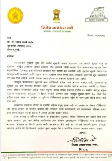 पावसाच्या पाण्याचा निचरा या फ्लडींग पॉईंट्स येथून झाला नाही तर मुंबईकरांना भीषण परिस्थितीचं तोंड द्यावं लागेल. या फ्लडींग पाईंट्सजवळ पाण्याचा उपसा करण्यासाठी पंप लावण्याच्या पलिकडे आपण काय उपाय योजना केल्या आहेत?, हे आम्हा जनतेस कळाले पाहिजे, अशी मागणी नितेश राणेंनी म्हटलंय.