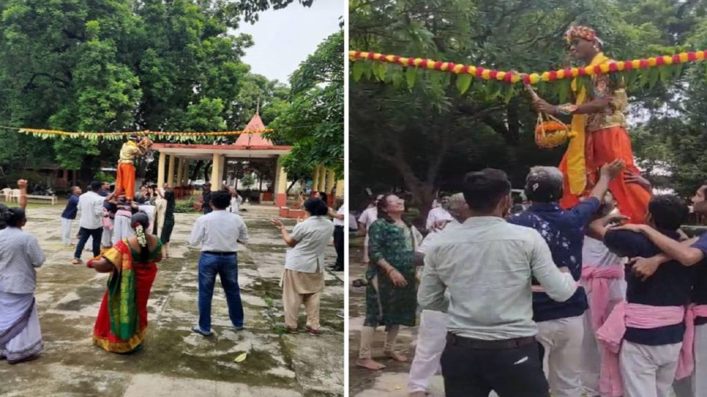 नागपूरच्या प्रादेशिक मनोरुग्णालयात रुग्णांवर उपचाराचाच एक भाग म्हणून सामाजिक संस्कारासाठी विविध उपक्रम राबवले जातात. जन्माष्टमीच्या निमित्ताने मनोरुग्णालयात गुरुवारी (७ सप्टेंबर) दहीहंडीचा कार्यक्रम झाला. त्यात एका रुग्णाला कृष्ण, एकाला राधा बनवण्यात आले होते. मनोरंजन विभाग परिसरात एका विशिष्ट उंचीवर दहीहंडी बांधण्यात आली. सुरुवातीला मनोरुग्णांनी सुंदर गीत सादर करत त्यावर नृत्य सादर केले. त्यानंतर कृष्णाने दहीहंडी फोडली. त्यानंतर सगळ्याच उपस्थित रुग्ण, डॉक्टर, कर्मचाऱ्यांनी जल्लोष केला. कार्यक्रमाला वैद्यकीय अधीक्षक डॉ. सतीश हुमणे, डॉ. श्रीकांत करोडे, डॉ. ज्योत्स्ना, मेट्रन रूपाली ठाकरे उपस्थित होते. संयोजन योगा शिक्षिका ज्योती फिस्कल यांनी केले.