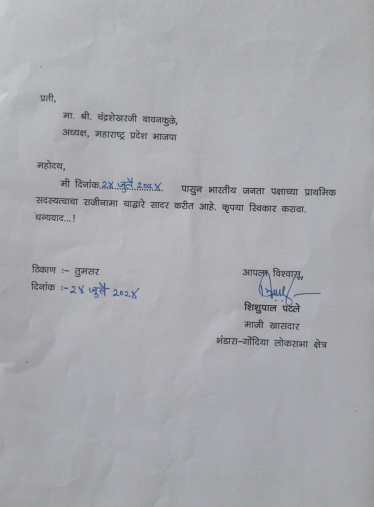 यामुळे अतिशय जड अंत:करणाने आपण पक्षाच्या सर्व पदांचा व भाजपच्या प्राथमिक सदयत्वाचा राजीनामा दिला असल्याचे माजी खासदार शिशुपाल पटले यांनी सांगितले.