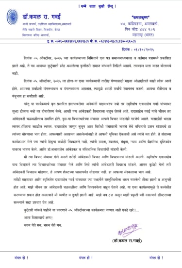 राष्ट्रीय स्वयंसेवक संघाच्या ०५ ऑक्टोंबरच्या कार्यक्रमाच्या निमित्ताने एक पत्र समाजमाध्यमावर व वर्तमान पत्रामध्ये प्रकाशित झाले आहे. ते पत्र आमच्या कुटुंबाशी स्नेह असलेल्या कुणीतरी समाज बांधवाने लिहिले असावे. त्याबद्दल मला जास्त बोलायचे नाही.