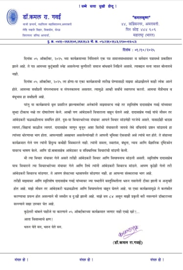 राष्ट्रीय स्वयंसेवक संघाच्या ०५ ऑक्टोंबरच्या कार्यक्रमाच्या निमित्ताने एक पत्र समाजमाध्यमावर व वर्तमान पत्रामध्ये प्रकाशित झाले आहे. ते पत्र आमच्या कुटुंबाशी स्नेह असलेल्या कुणीतरी समाज बांधवाने लिहिले असावे. त्याबद्दल मला जास्त बोलायचे नाही.