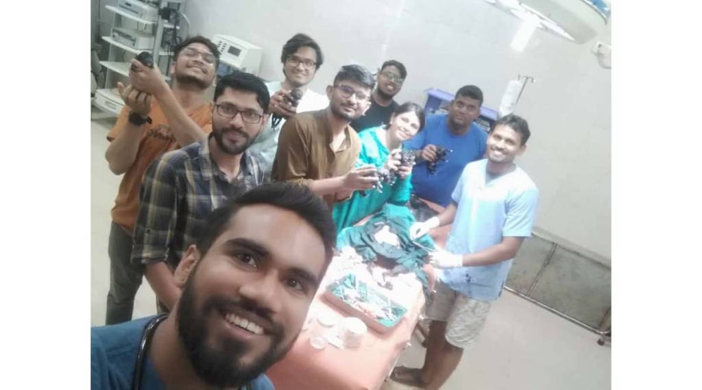 प्रसूतीदरम्यान एखाद्या गर्भवती महिलेचे बाळ अर्धवटच बाहेर आल्याने डॉक्टरांची होणारी धावपळ, बाळ आणि आई दोघांनाही वाचवण्यासाठी डॉक्टरांच्या प्रयत्नानंतर बाळ आणि आई सुखरूप असण्याचा आनंद आपल्यापैकी अनेकांनी अनुभवला किंवा ऐकला तरी नक्कीच असेल. मात्र, अशीच काहीही घटना रस्त्यावरील मादी श्वानाच्या बाबतीत घडली असेल तर नवल वाटता कामा नये. अपर्णा रेड्डी यांनी दोन दिवसांपासून एका भटक्या मादी श्वानाच्या पोटात अर्धवट बाळ अडकलेले पाहून तिला तत्परतेने रात्री ८ वाजता पशुवैद्यकीय रुग्णालयात आणले. पशुवैद्यकीय महाविद्यालयाच्या प्राध्यापकांनी या स्थितीचे गांभीर्य ओळखून रात्रीच त्वरित रुग्णालयात धाव घेतली. सर्व तपासण्या करून ‘सिझेरीन’ करण्याचा निर्णय घेतला. मादी श्वानाची अवस्था बिकट होती. परंतु शल्यचिकित्सक डॉ. संदीप आखरे आणि डॉ. गौरी खंते यांनी आपले कौशल्य पणाला लावून उशिरापर्यंत शस्त्रक्रिया करून एकूण सात पिल्लं सुरक्षितपणे जिवंत बाहेर काढली. डॉक्टर आणि रेड्डी यांनी प्राण्यांप्रती असलेल्या मानवी संवेदनशीलतेचा परिचय दिला.