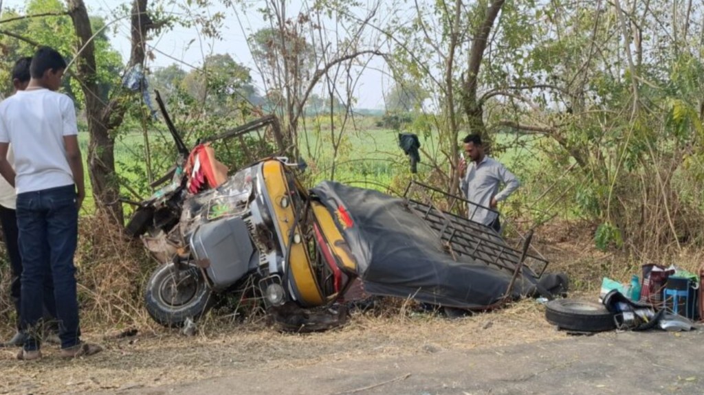 या अपघातात जरीनाबी अयुबशहा (वय ४५) यांचा घटनास्थळीच मृत्यू झाला. रंजना जना परमेश्वर कास्तोडे (वय ५३), शांताबाई शेवाळे (वय ४५), कल्पना विठ्ठल जमधाडे (वय ४०), अलका मधुकर शेवाळे (वय ४०), लक्ष्मण बबन करवते (वय ४५), चंद्रभागा गजानन नागरे (वय ४०), राधा गजानन नागरे तसेच ॲपे चालक आसिफ निंशालशहा (वय ३०) हे आठ जण गंभीर जखमी झाले आहेत.