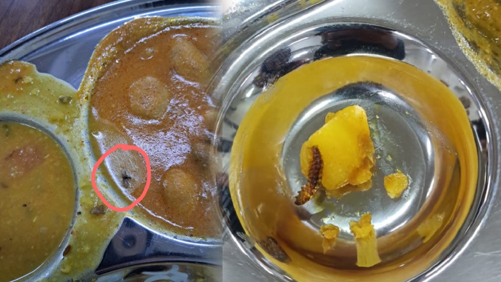 बुधवारी दुपारच्या जेवणावेळी काही विद्यार्थ्यांना भाजीमध्ये पूर्णपणे तळलेला सुरवंट दिसल्याचा दावा करण्यात आला. फळांच्या तुकड्यावर मृत किडा आढळल्याचे, तर एका भाजीपदार्थात माशीसदृश घटक दिसल्याचेही विद्यार्थ्यांचे म्हणणे आहे. मशरूम करीमध्ये ‘स्पंजसदृश’ पदार्थ आढळल्याचा आरोपही करण्यात आला. काही विद्यार्थ्यांनी हा प्रकार लक्षात येताच जेवण सोडून दिले, तर काहींनी आधीच जेवण घेतल्याचे सांगितले. या संदर्भातील छायाचित्रे आणि संदेश विद्यार्थ्यांच्या व्हॉट्सअॅप गटांवर व्हायरल झाले असून, ‘मांसाहारी’ पदार्थात नेमके काय मिसळले जात आहे, असा संतप्त सवालही उपस्थित केला जात आहे.