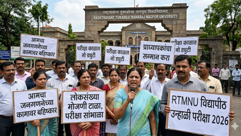 नागपूर: महाराष्ट्र शासनाच्या विविध कार्यालयाद्वारे वरिष्ठ महाविद्यालयातील प्राध्यापकांना लोकसंख्या मोजणी संदर्भात जबाबदारी देण्यात आली. सदर जबाबदारी देत असताना प्राध्यापकाचा पदाचा सन्मानाचा विचार न करता आणि परीक्षेतील संवेदनशील वेळेचा विचार न करता जबाबदारी देण्यात आल्याने प्राध्यापकांनी जनगणनेच्या कामावर बहिष्कार टाकला आहे.