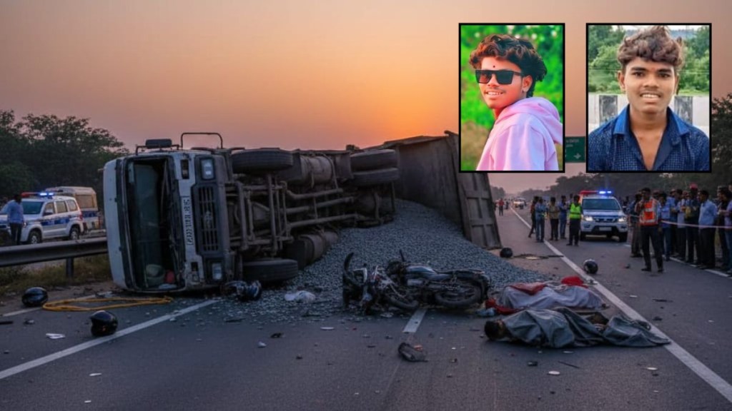 यवतमाळ : वाळू वाहतूक करणाऱ्या भरधाव टिप्परने दुचाकीला समोरासमोर जोरदार धडक दिली. या भीषण अपघातात टिप्परखाली चिरडल्याने दोन तरूणांचा जागीच मृत्यू झाला देवानंद दिलीप दोडके आणि शुभम उकंडा पाटे अशी मृत तरूणांची नावे आहेत. हा भीषण अपघात महागाव तालुक्यातील हिवरा संगम गावाजवळ राष्ट्रीय महामार्ग क्रमांक ३६१ वर आज शनिवारी दुपारी एक वाजाताच्या सुमारास झाला.