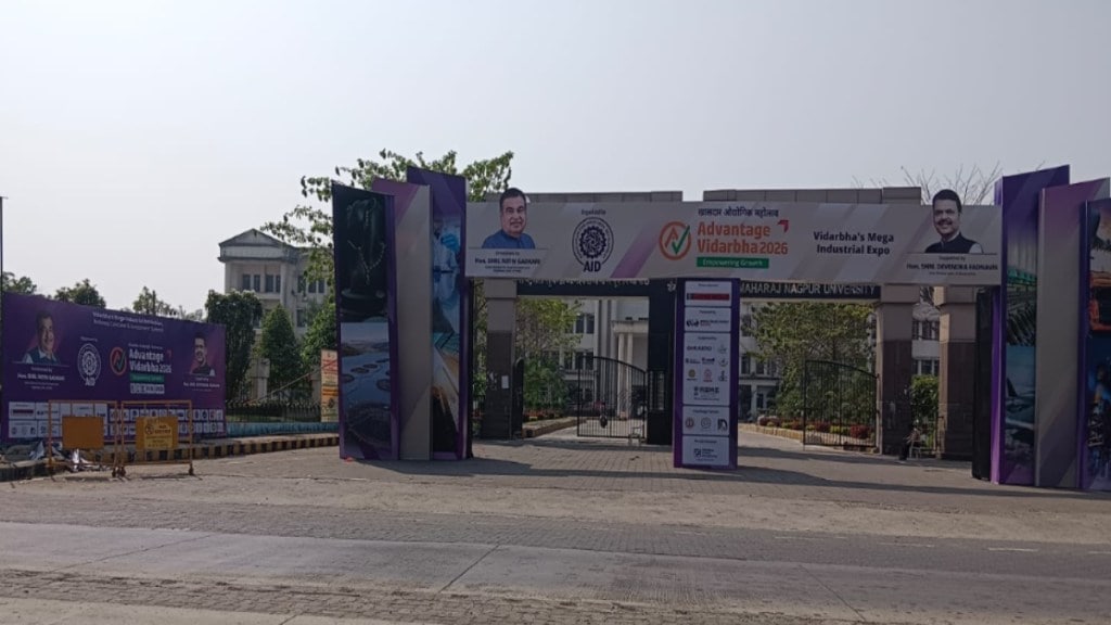 नागपूर : राष्ट्रसंत तुकडोजी महाराज नागपूर विद्यापीठाच्या शैक्षणिक परिसरात केंद्रीय मंत्री नितीन गडकरी यांच्या संकल्पनेतून होत असलेला ‘खासदार औद्योगिक महोत्सव’ म्हणजेच ‘ॲडव्हांटेज विदर्भ’चे फलक मुख्य प्रवेशदारावर लावण्यात आले. या फलकांमुळे राष्ट्रसंत तुकडोजी महाराज यांच्यासह महात्मा ज्योतिबा फुले यांचेही नाव झाकण्यात आले.