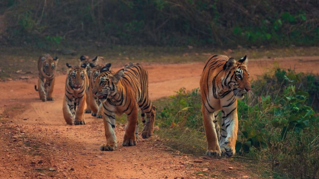 नागपूर : गोठणगाव गँग, गोठणगाव एक्प्रेस अशा एक ना अनेक नावांनी प्रसिद्ध झालेल्या ‘एफ टू’ वाघीण आणि तिच्या पाच बछड्यांची प्रसिद्धी दिवसेंदिवस वाढतच आहे. ते लहान होते तेव्हाही त्यांचा कौतुक सोहोळा पार पडत होता. आता ते मोठे झालेत तरीही त्यांची प्रसिद्धी, किर्ती दूरपर्यंत पसरली आहे. त्यांना एकत्रित पाहणे हाच मोठा आनंदाचा क्षण आहे आणि असाच एक क्षण डॉ. ऐश्वर्या फटिंग यांनी टिपला आहे.
