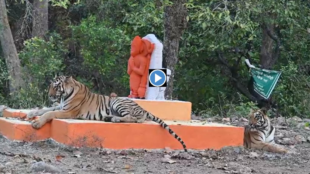 “बजरंग” या वाघासोबत जखमी झालेला आणि लढाईत त्याला यमसदनी पाठवणारा ” छोटा मटका” अजूनही पूर्णपणे ठीक झालेला नाही. या “छोटा मटका” आणि “भानुसखिंडी” ची पिलावळ “डेडली बॉईज” या नावाने प्रसिद्ध आहेत. २० महिन्याचे हे दोन्ही वाघ शनिवारी रामदेगीच्या प्राचीन मंदिरातील हनुमानाच्या मूर्ती भोवती नतमस्तक होताना दिसून आले. एवढ्यावरच ते थांबले नाही तर मारुतीरायासमोर नतमस्तक होत तेथेच त्यांनी ठाण मांडले. प्रकाश दुधकोर यांनी त्यांचा हा भक्तिमय प्रवास कॅमेऱ्यात टिपला. तर डेक्कन ड्रिफ्टचे पीयूष आकरे व कांचन पेठकर यांनी हा व्हिडीओ लोकसत्ताला उपलब्ध करून दिला.