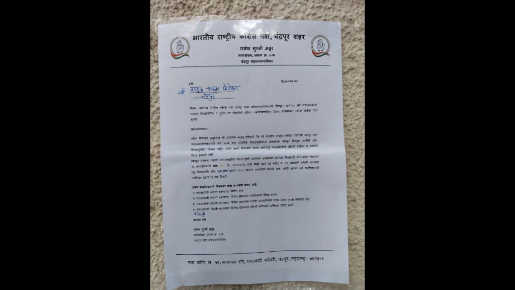 दरम्यान सुरेंद्र अडबाले यांच्या ज्या घरावर नोटीस लावण्यात आली तिथे त्याचा भाऊ वास्तव्याला आहे. पक्षाच्या बैठकीच्या नोटीस अशा प्रकारे पाठविता येत नाही असे जाणकारांचे म्हणणे आहे. दरम्यान या प्रकरणी आता धानोरकर गटाचे नगरसेवक पोलिस तक्रार दाखल करणार असल्याची माहिती आहे.