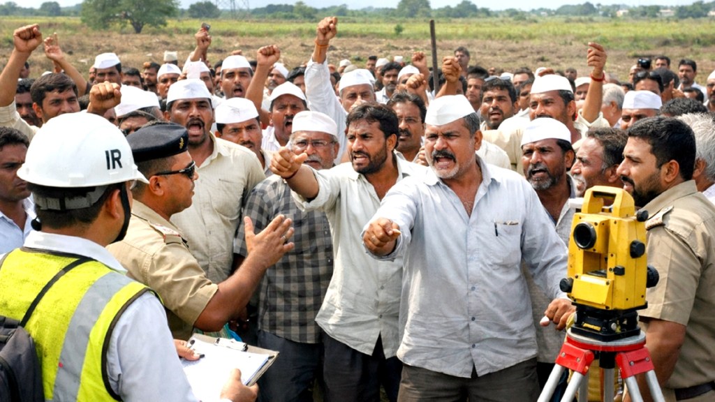 तसेच बाजारभावाच्या अनेक पटीने वाढीव मोबदला, पुनर्वसनाची हमी आणि शेतीवर अवलंबून असलेल्या कुटुंबांच्या उपजीविकेची पर्यायी व्यवस्था करण्याची मागणीही करण्यात आली. घटनास्थळी काही काळ तणावपूर्ण वातावरण निर्माण झाले होते. शेतकरी आणि अधिकारी यांच्यात चर्चा झाली, मात्र कोणताही तोडगा न निघाल्याने परिस्थिती आणखी चिघळण्याची शक्यता निर्माण झाली. कायदा-सुव्यवस्था बिघडू नये, यासाठी अधिकाऱ्यांनी संयमाची भूमिका घेत मोजणी न करता माघार घेतली.