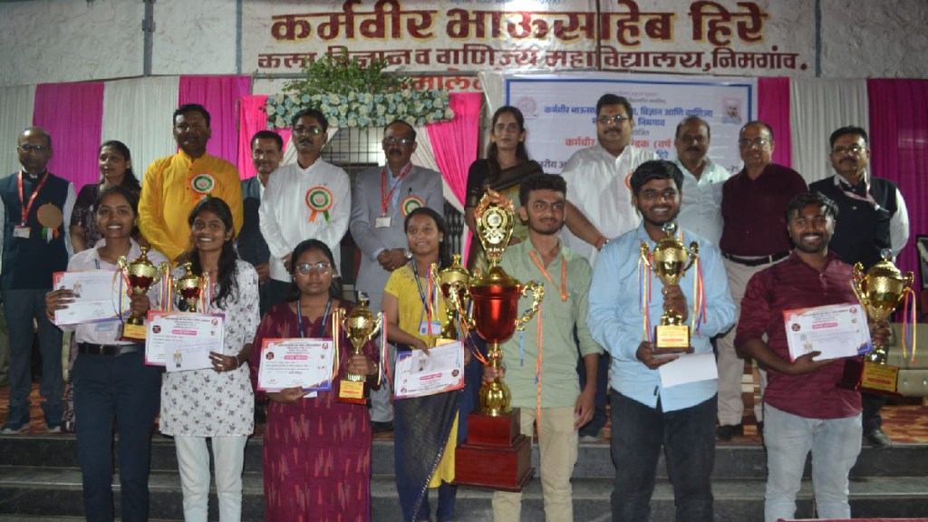मालेगाव : तालुक्यातील निमगाव येथील कर्मवीर भाऊसाहेब हिरे कला, विज्ञान व वाणिज्य महाविद्यालयातर्फे आयोजित ‘राज्यस्तरीय आंतरमहाविद्यालयीन कर्मवीर काव्य करंडक २०२६’ स्पर्धा नुकतीच पार पडली. या प्रतिष्ठेच्या स्पर्धेत नाशिकच्या पंचवटी कॉलेज ऑफ मॅनेजमेंट व कॉम्प्युटर सायन्स महाविद्यालयाने सांघिक सर्वसाधारण विजेतेपद पटकावत ‘कर्मवीर काव्य करंडका’वर आपले नाव कोरले आहे. या स्पर्धेसाठी राज्यभरातील महाविद्यालयांनी दमदार सहभाग नोंदवला.